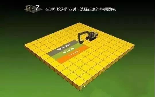 在進(jìn)行挖溝作業(yè)的時(shí)候,先挖掘溝槽的兩側(cè),再挖掘中間部分。這樣挖中間時(shí)能省不少事兒,還省勁。