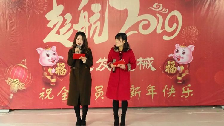 新春年會(huì)在兩位資深美女主持的祝福中拉開帷幕,熱烈開場(chǎng)。