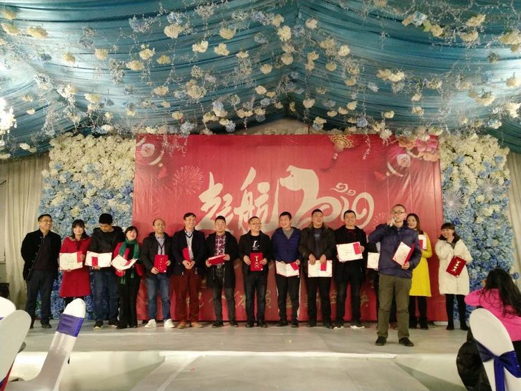 圖為: 四川匯發(fā)總經(jīng)理彭任遠(yuǎn)先生為2018優(yōu)秀團(tuán)隊(duì)頒發(fā)獎(jiǎng)品、證書和拍照留念。