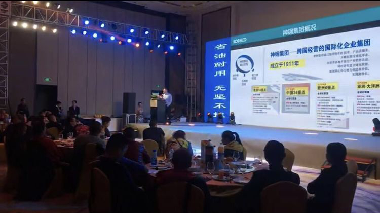 神鋼建機(中國)有限公司市場促進部王部長在臺上介紹了神鋼產品與神鋼建機的成長與歷史。